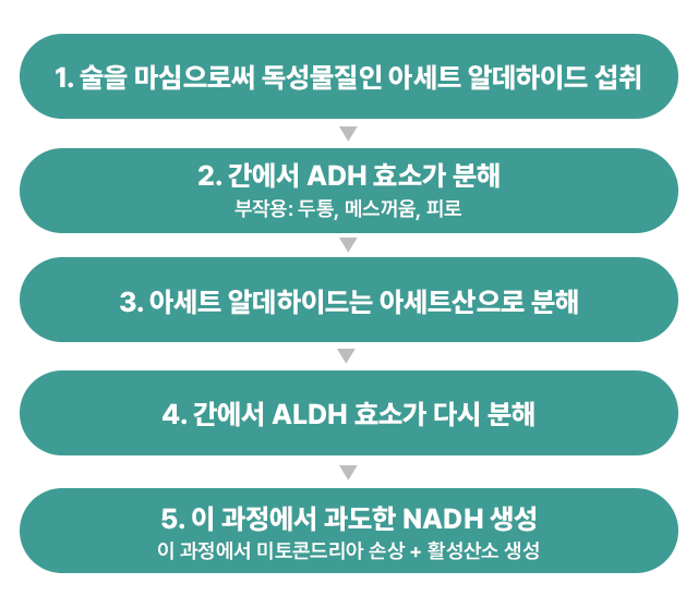 단순 숙취? 아닙니다. 술은 몸속에서 ‘활성산소’를 폭발적으로 만들어냅니다. 알코올이 간에서 분해되는 과정에서 발생하는 활성산소는 세포를 공격하고 염증 반응을 일으켜 피로감과 두통, 갈증 같은 숙취 증상을 유발합니다. 문제는 여기서 끝나지 않습니다. 활성산소가 과도하게 쌓이면 간세포가 손상되고, 면역력이 떨어지며, 노화까지 앞당길 수 있습니다.