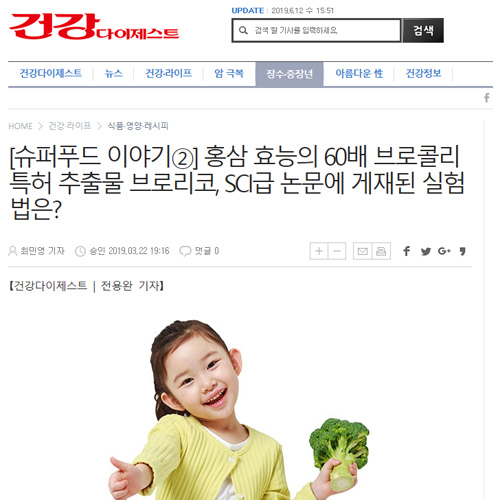 홍삼 효능의 60배 브로콜리 특허 추출물 브로리코, SCI급 논문에 게재된 실험법은?(원본)